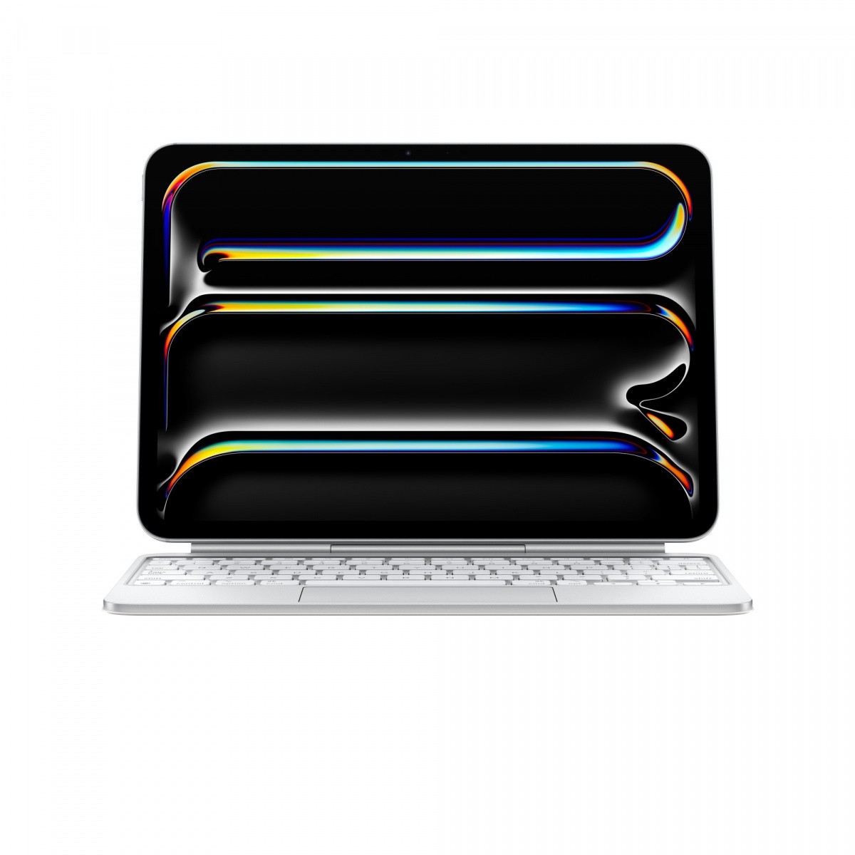 Klawiatura Magic Keyboard do iPada Pro 11 cali (M4/M5) - angielski (USA) - biała Magic Keyboard do iPada Pro to fantastyczne połączenie klawiatury i gładzika w nowej, smukłej i przenośnej konstrukcji z aluminiową podkładką pod dłoń. Klawiatura jest wyposażona w rząd 14 klawiszy funkcyjnych, zapewniających szybki dostęp do takich funkcji jak kontrola jasności ekranu czy głośności, i ma złącze USB-C do ładowania. Wspornik efektownie unosi urządzenie nad klawiaturą i pozwala swobodnie regulować kąt nachylenia ekranu.