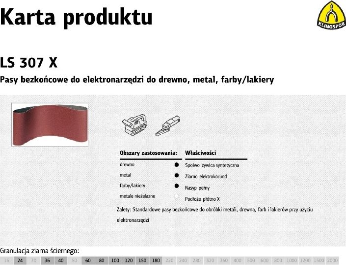 Klingspor Pas bezkocowy 75x457mm gr. 36 LS 307 X 1szt. (268641)