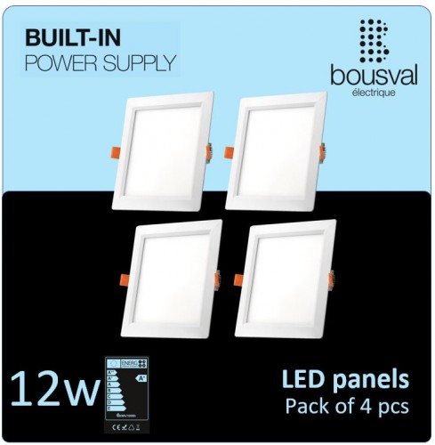 Komplekts 4 gabali kvadrātformas LED panelis 12W 4000K 168x168x29 ar iebūvētu barošanas bloku