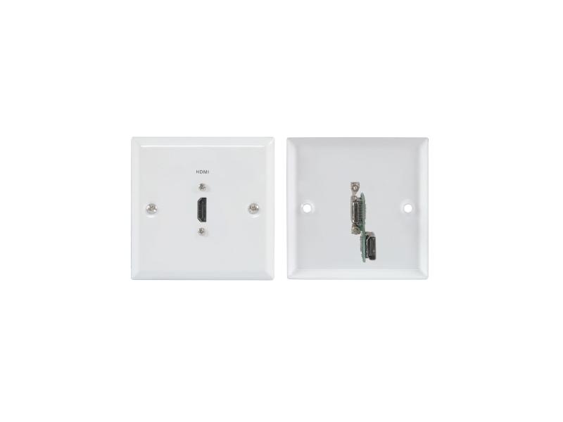 Flush mount steel wallplate with a HDMI connection for digital audio and video signals.