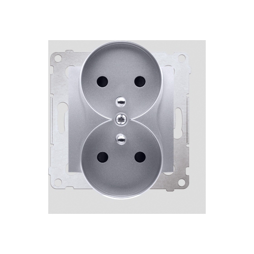 Kontakt-Simon Gniazdo podwójne 16A IP20 z/u i przeson torów srebrny mat - DGZ2MZN.01/43