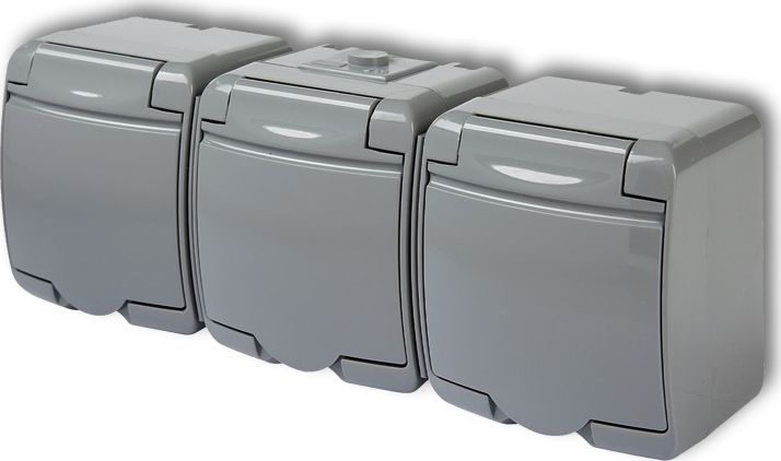 KOS JUNIOR Gniazdo potrójne z/u (klapka popielata) popielaty 10GHE-3p