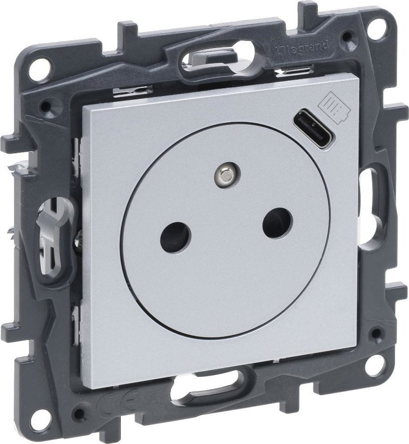 Legrand adowarka USB-C z gniazdem pojedynczym Legrand Niloe Step 863338 gniazdo z uziemieniem z przesonami adowarka typ C 1,5A aluminium