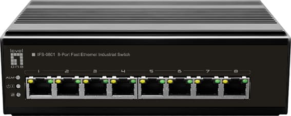 LevelOne IFS-0801. Slēdža tips: Nepārvaldīts. Basic switching RJ-45 Ethernet portu veids: Fast Ethernet (10/100), Basic switching RJ-45 Ethernet portu daudzums: 8. Pilns duplekss. Adrešu tabulas izmērs: 8000 ieraksti, Komutācijas ietilpība: 1,6 Gbit/s. Tīkla standarts: IEEE 802.3, IEEE 802.3u, IEEE 802.3x. Pie sienas piestiprināms