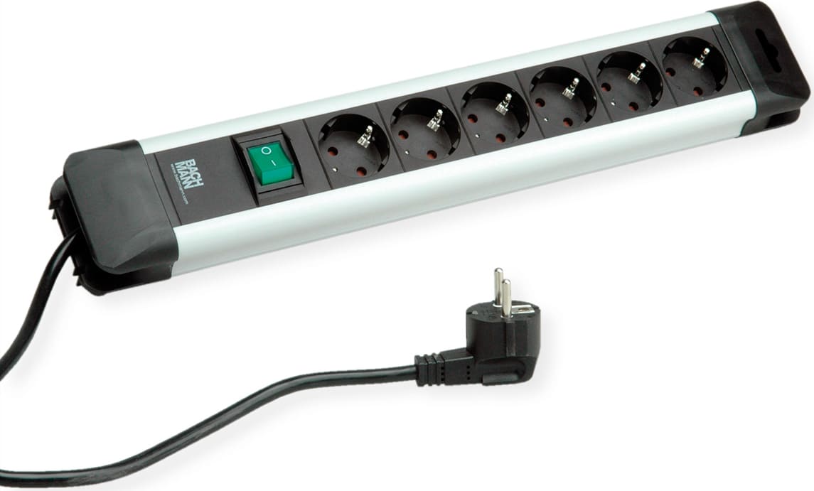 Bachmann CONNECTUS socket strip 6x earthing contact, aluminium, Plastic, with switch, 2 m