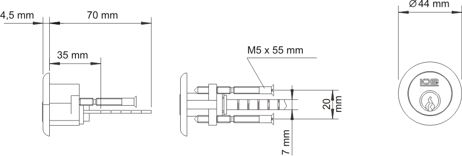 LOB Wkadka do zamka wierzchniego klucz z nasadk nikiel 1szt. (WT07)