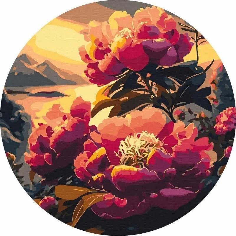 Malowanie po numerach okrge - Róowy kwiat 40cm