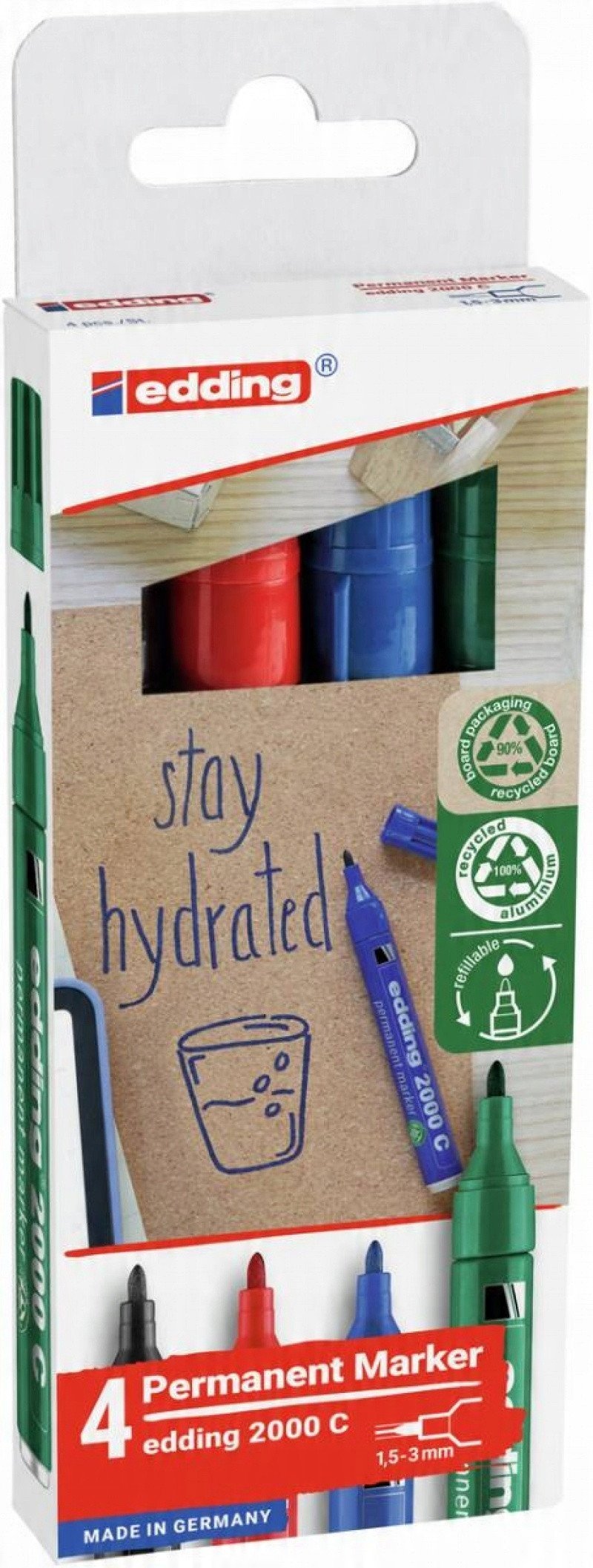 Marker permanentny e-2000c EDDING, 1,5-3 mm, 4 szt., mix kolorów