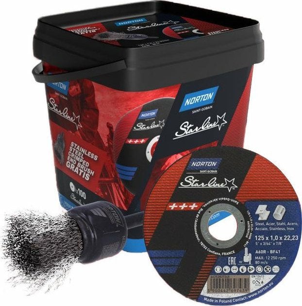 Norton TARCZA DO PRZECINANIA NORTON STARLINE A60R 125x1.0x22.23 /100 sztuk +SZCZOTKA PDZELKOWA
