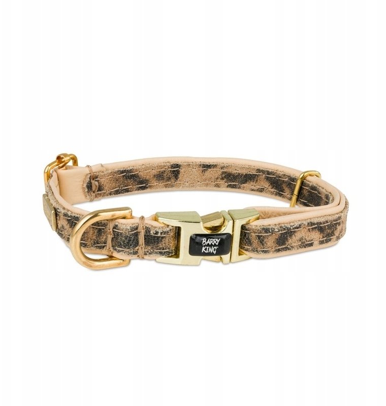 Obroa dla psa, Wild Cheetah, beowa, skórzana mosidz, M 16mm/30-50cm