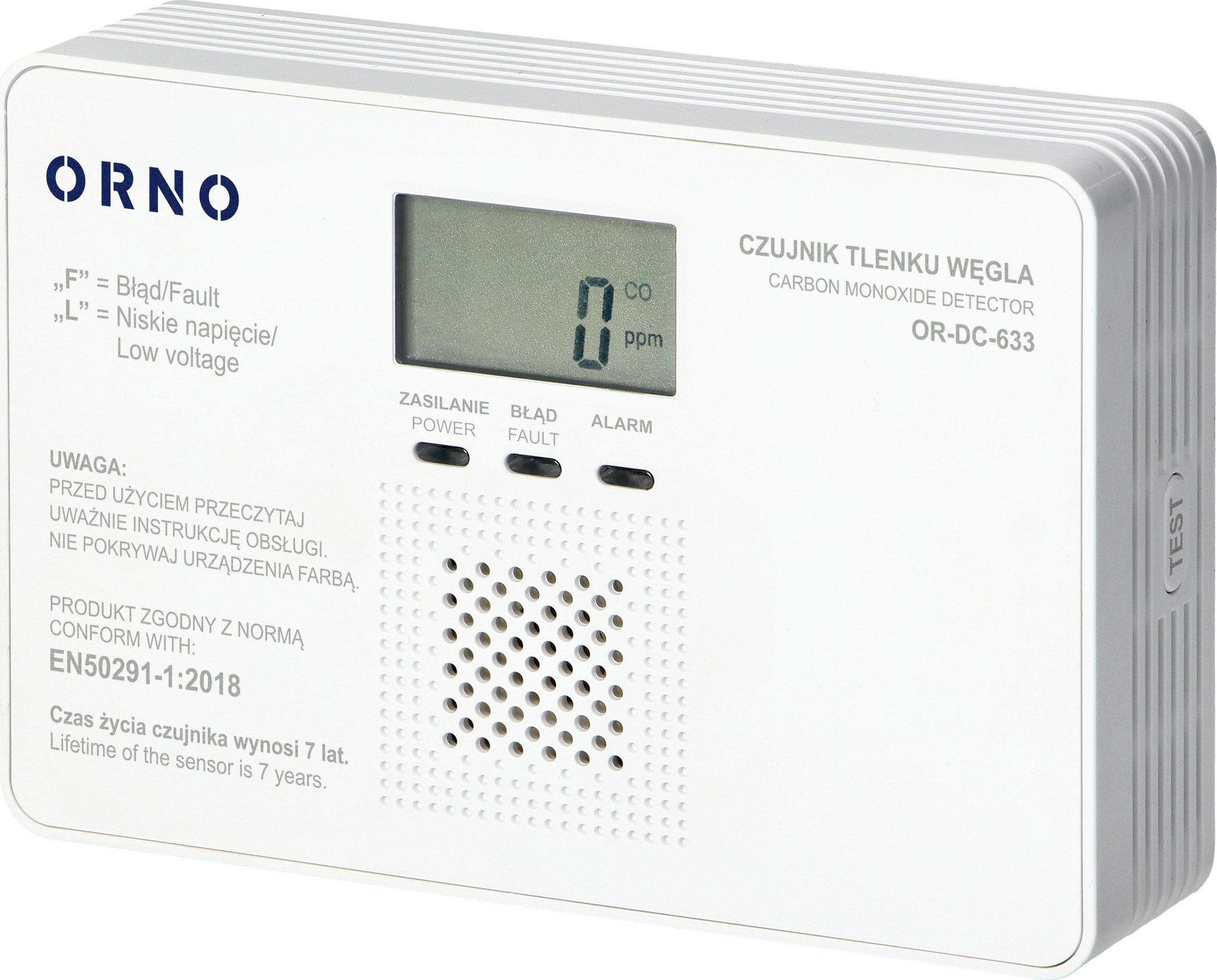 Orno Bateryjny czujnik tlenku wgla (czadu), 9V, ywotno 7lat, zgodno z norm EN 50291-1:2018
