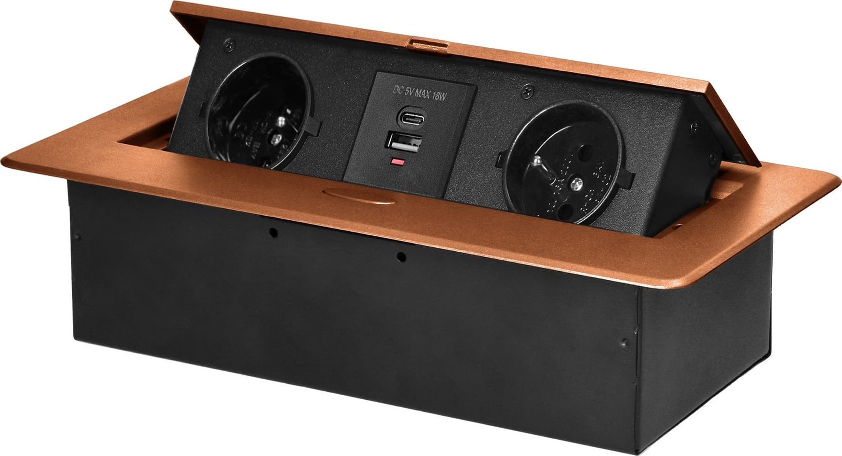 Orno Gniazdo meblowe Orno OR-GM-9034/C wpuszczane w blat z paskim frezowanym rantem i adowark USB 2x2P+Z 2xUSB (typ A+C; 3,6A) zote