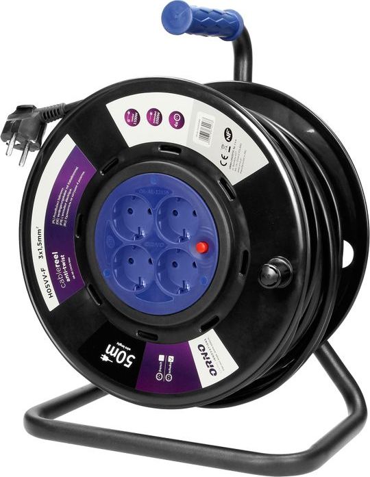 Orno Przeduacz bbnowy, 4 gniazda 2P+Z, kabel PVC H05VV-F 3x1,5mm2, dugo - 50m, STAE GNIAZDA, termik, przesony torów prdowych