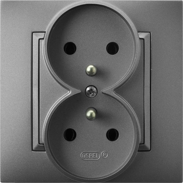 Ospel ARIA Gniazdo podwójne z/u szary mat GP-2UZ/70