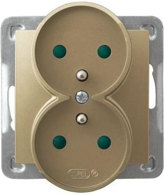 Ospel Gniazdo Impresja podwójne z uziemieniem i przesonami zoty metalik (GP-2YRZP/m/28)