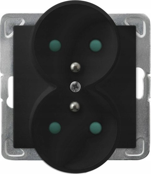 Ospel Gniazdo Ospel Impresja GP-2YRAZP/m/33 podwójne z uziemieniem z przesonami torów prdowych modu bez ramki czarny metalik