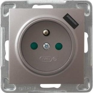Ospel Gniazdo pojedyncze Ospel Impresja GP-1YZPUSB/m/23 z uziemieniem z przesonami z adowark USB 2,1A tytanowe