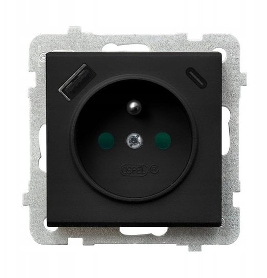 Ospel Gniazdo pojedyncze z uziemieniem z przesonami torów prdowych, z adowark USB A+C matowe srebrne