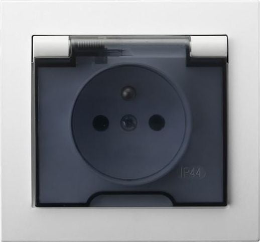 Ospel KIER Gniazdo bryzgoszczelne z/u IP44 klapka przezroczysta biae GPH-1WZd - GPH-1WZd