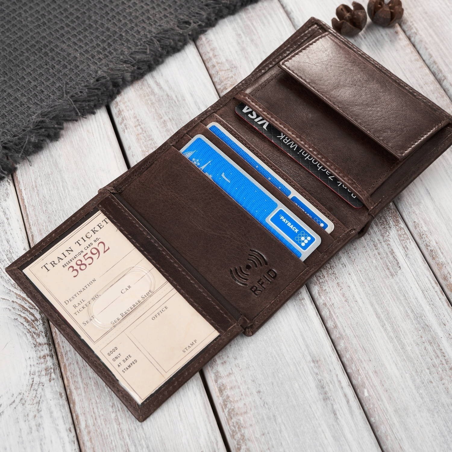Paolo Peruzzi Portfel mski skórzany brzowy klasyczny elegancki z ochron RFID AY-10-BR
