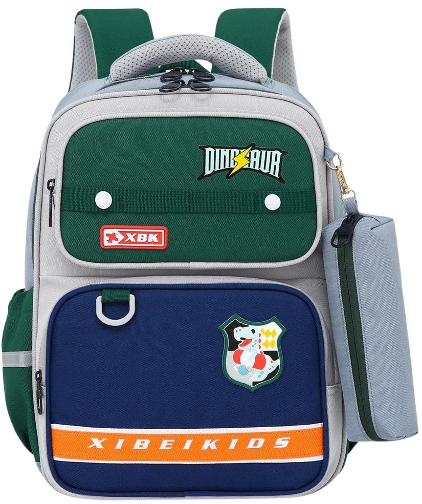 Plecak Szkolny Naszywki Dinozaur Z Piórnikiem Szary 16L