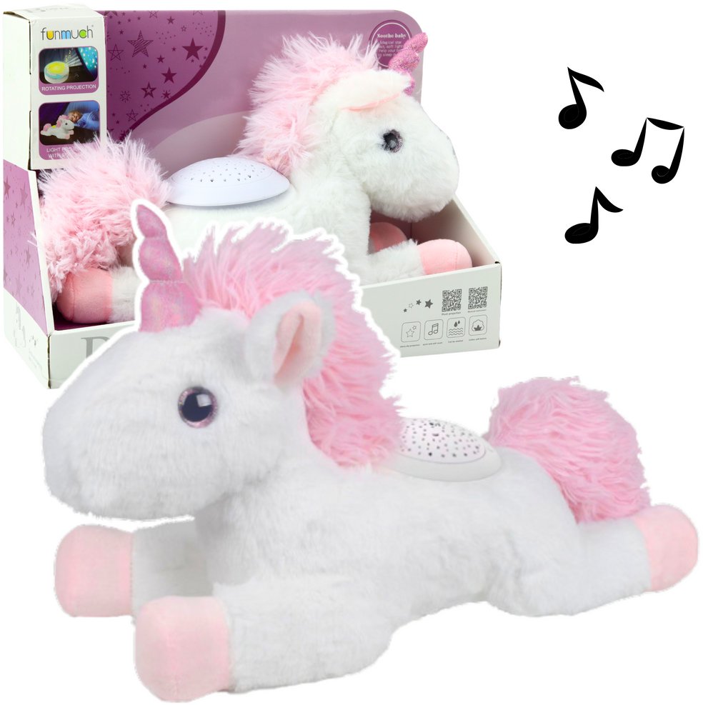 Pluszowy Jednoroec Usypiajca Przytulanka Projektor Dwik Biay