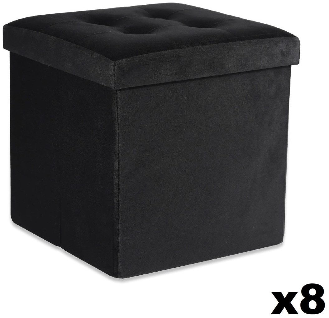 Pufa skadana L z guzikami - 38x38x38cm aksamit czarna x 8