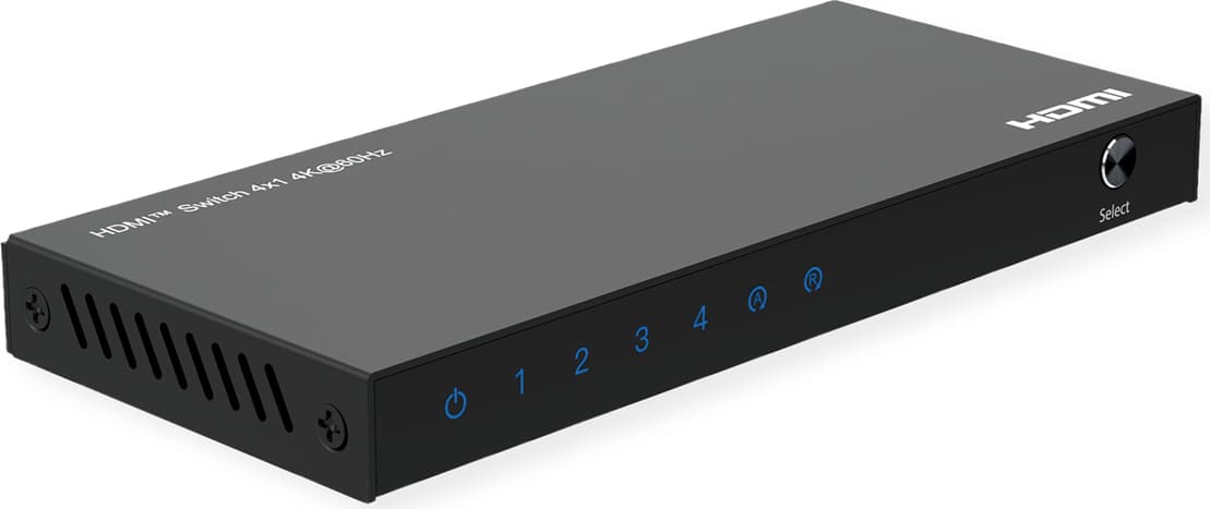 This ROLINE HDMI Switch displays the video output of up to 4 HDMI sources on a monitor or projector with a resolution of up to 4K@60Hz.