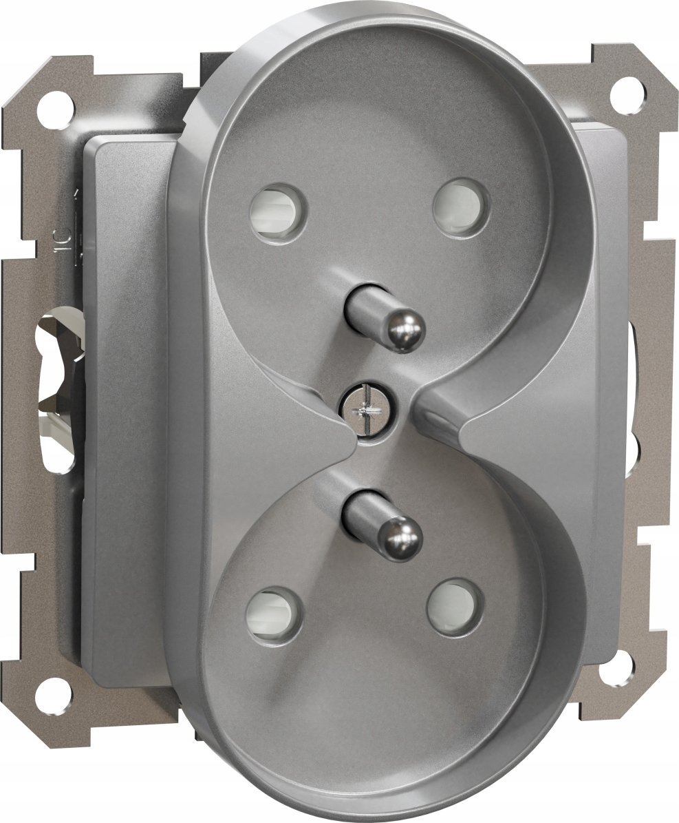Schneider Electric Sedna Design, Gniazdo 2x2P+PE z przesonami do systemu ramkowego (do ramek Elements), srebrne aluminium