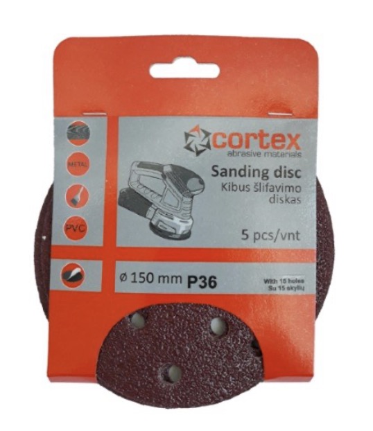 Smilšpapīrs Cortex 28166; 150 mm; P36; 5 gab.