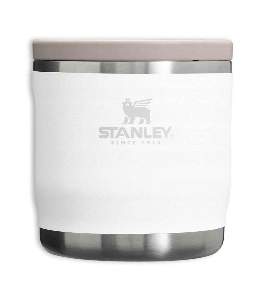 Stanley The Adventure To‑Go Food Jar 0.35 L, Frost — a compact food thermal container made of 18/8 stainless steel with double‑wall vacuum insulation that keeps food hot or cold for up to 6 hours, leak‑proof and featuring a wide mouth for easy filling and cleaning, dimensions approx. 10.7 × 10 × 10 cm, weight about 0,3 kg, ideal for soups, porridges, salads and other meals at home, work, on walks or during travel.