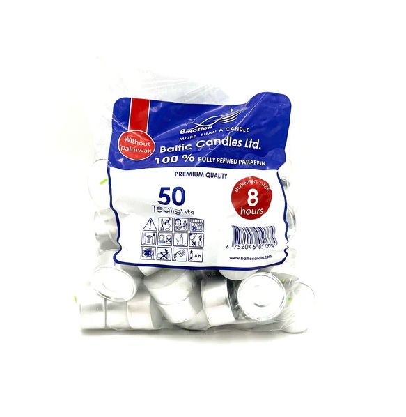 Svece parafina T-gaisma ar alumin. pamatu, 50 gab.(10 pieak./1 kaste)