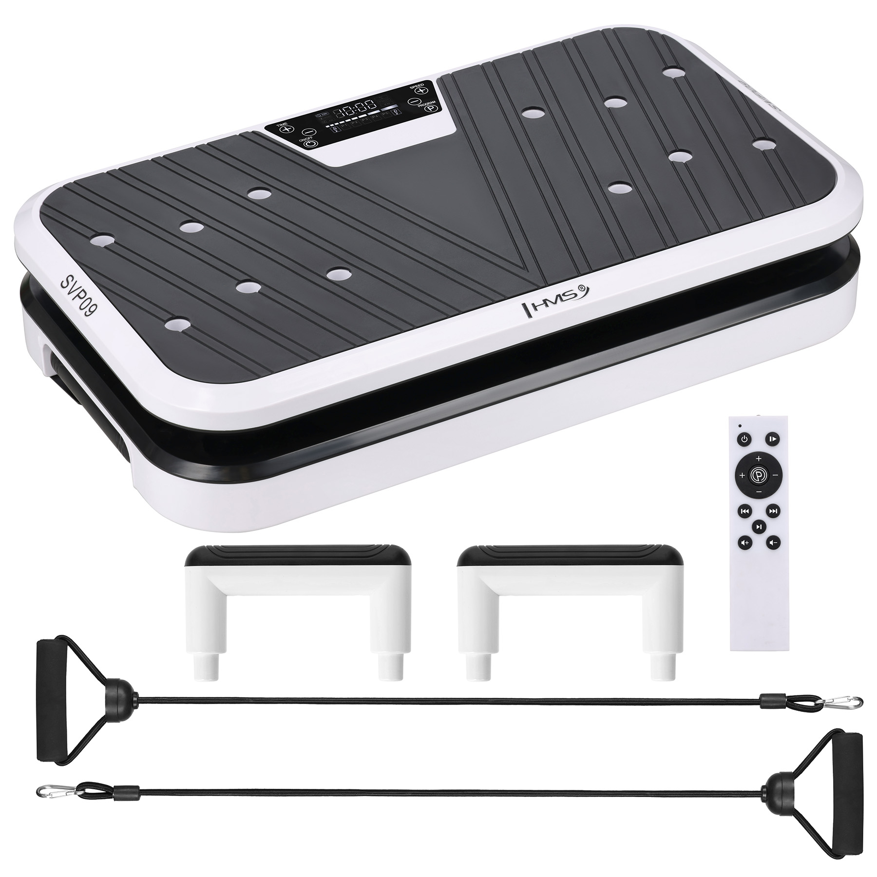 VIBRĀCIJAS PLATFORMA SVP09 AR PUSH UP STIEM HMS HMS Fitness vibrācijas platforma SVP09 ir moderna treniņu ierīce, kas ļauj efektīvi nostiprināt muskuļus, uzlabot fizisko sagatavotību un dažādot ikdienas treniņus – neizejot no mājām. Pateicoties plašajām regulēšanas iespējām un bagātīgajam aprīkojumam, tas ir piemērots gan iesācējiem, gan pieredzējušiem lietotājiem. Efektīvs augšup un lejup vibrācijas treniņš SVP09 vibrācijas platforma darbojas augšup un lejup vērstā asī, radot intensīvas vibrācijas, kas aktivizē dziļās muskuļu grupas. Ātruma diapazons no 1 līdz 120 līmeņiem ļauj precīzi pielāgot treniņu intensitāti individuālajām vajadzībām – no vieglas aktivizēšanas līdz prasīgiem spēka un kondicionēšanas treniņiem. Vibrācijas amplitūda no 1 cm līdz 2,8 cm vēl vairāk palielina vingrinājumu efektivitāti. Treniņu programmas un laika pielāgošana SVP09 ir aprīkots ar 5 iepriekš iestatītām treniņu programmām, kas atbalsta dažādus mērķus, piemēram, tauku samazināšanu, uzlabotu asinsriti vai muskuļu nostiprināšanu. Lietotāji var arī manuāli iestatīt treniņa laiku no 1 līdz 20 minūtēm, ļaujot sesiju perfekti pielāgot ikdienas grafikam. Vingrojumu daudzpusība – pretestības lentes un atspiešanās rokturi Platformai ir pretestības lentes, kas ļauj vienlaicīgi trenēt ķermeņa augšdaļas un apakšdaļas. Papildu priekšrocība ir push-up rokturi, kurus var novietot dažādās konfigurācijās, ievērojami palielinot iespējamo vingrinājumu klāstu un ļaujot veikt visaptverošus visa ķermeņa treniņus uz vienas vibrācijas platformas. Bluetooth, mūzika un ērta vadība SVP09 platformai ir Bluetooth modulis, kas ļauj klausīties iecienītāko mūziku tieši no ierīces treniņa laikā. Intuitīvs vadības panelis un komplektācijā iekļautā tālvadības pults nodrošina ērtu darbību, nenoliecoties un nepārtraucot treniņu. Droša un izturīga konstrukcija HMS Fitness vibrācijas platformas stingrā konstrukcija garantē stabilitāti un drošu lietošanu. Maksimālais lietotāja svars līdz 150 kg padara SVP09 piemērotu plašam lietotāju lokam gan sievietēm, gan vīriešiem. Kāpēc izvēlēties SVP09 HMS Fitness vibrācijas platformu? SVP09 treniņu platforma apvieno modernās tehnoloģijas, funkcionalitāti un lietotāja komfortu. Ideāli piemērots mājas treniņiem, rehabilitācijai, iesildīšanai un muskuļu atjaunošanai. Tā ir daudzpusīga fitnesa ierīce, kas palīdz ātrāk un efektīvāk sasniegt labākus rezultātus. Specifikācijas: Garums: 60 cm Platums: 35 cm Augstums: 15 cm Treniņa virsmas izmēri: 55,5 x 30,5 cm Nominālā jauda: amplitude:10. – 2,8 cm Atspiežamā roktura diametrs: 3 cm Tālvadības pults: jā Bluetooth: jā Skaļrunis: jā Pretestības lentes Garums: 60 – 120 cm Roktura diametrs: 3 cm +MatPPp> Funkcijas: 5 treniņu programmas Manuālais režīms ar ātruma un laika regulēšanu 120 ātruma līmeņi Taimera funkcija: no 20 minūtēm uz leju Maksimālais lietotāja svars: 150 kg Kopējais svars: 11 kg