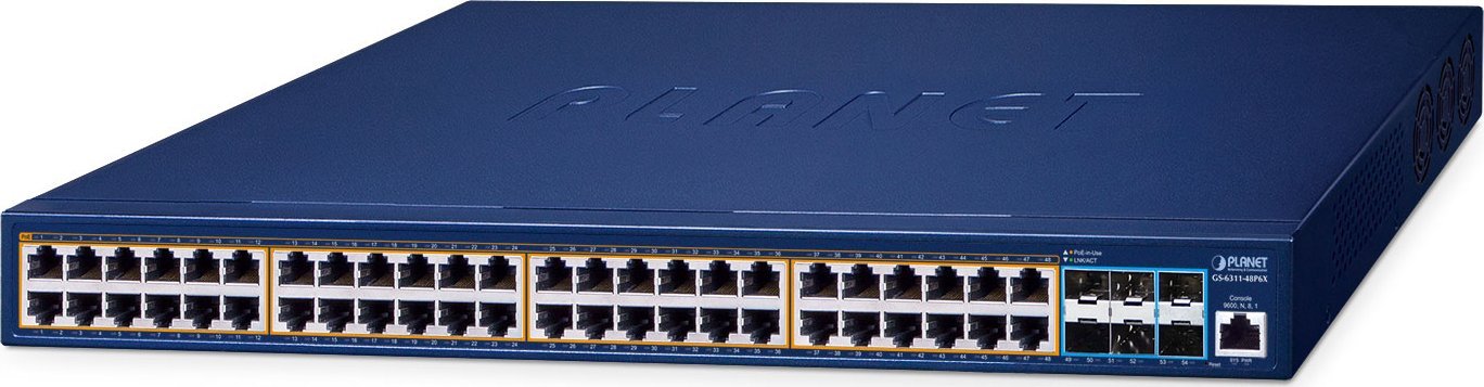 Switch Planet PLANET GS-6311-48P6X cza sieciowe Zarzdzany L3 Gigabit Ethernet (10/100/1000) Obsuga PoE Niebieski