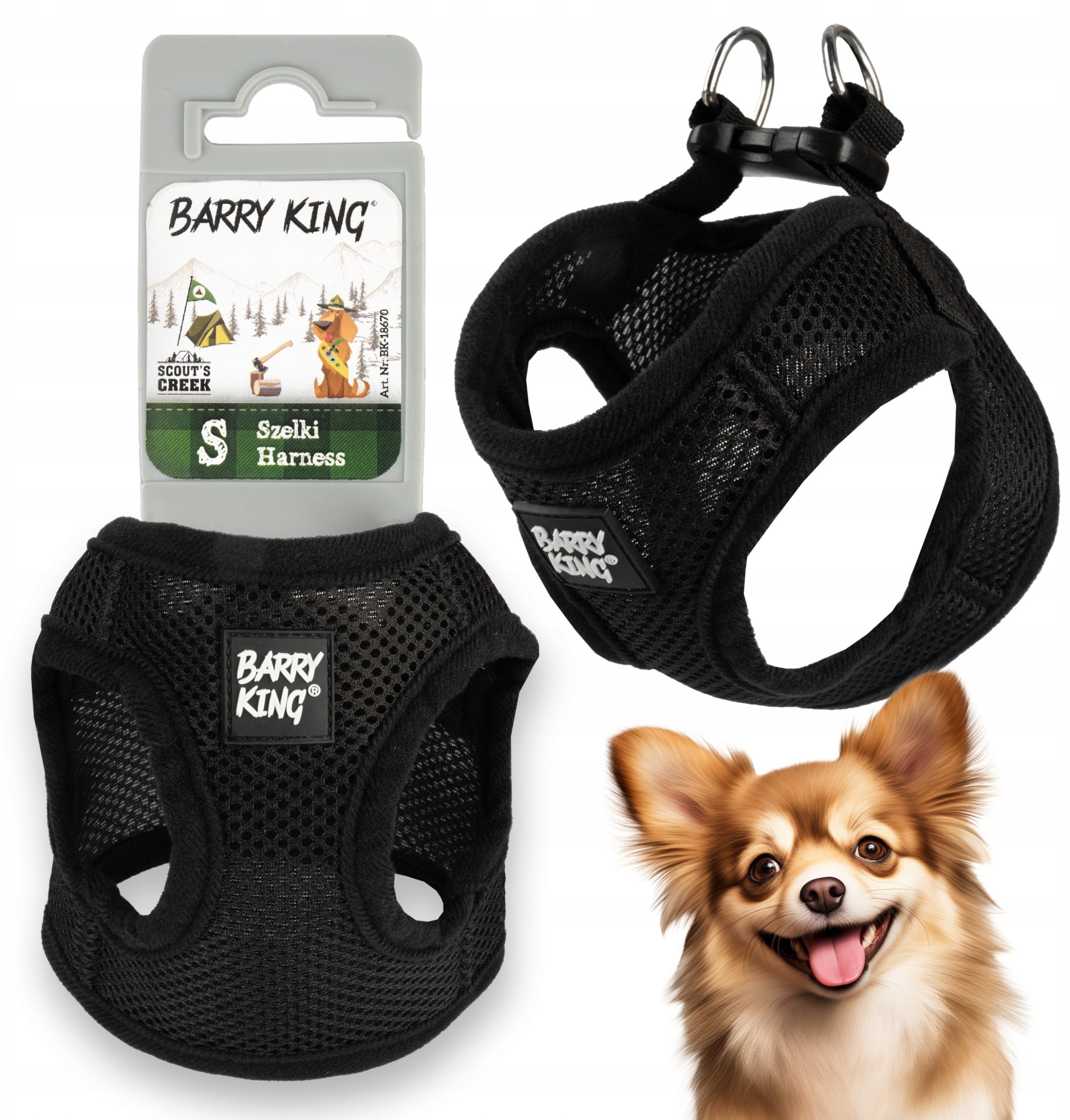Szelki, dla psa, czarne, bezuciskowe, S, ob.klatki 35cm/d.klatki 15cm
