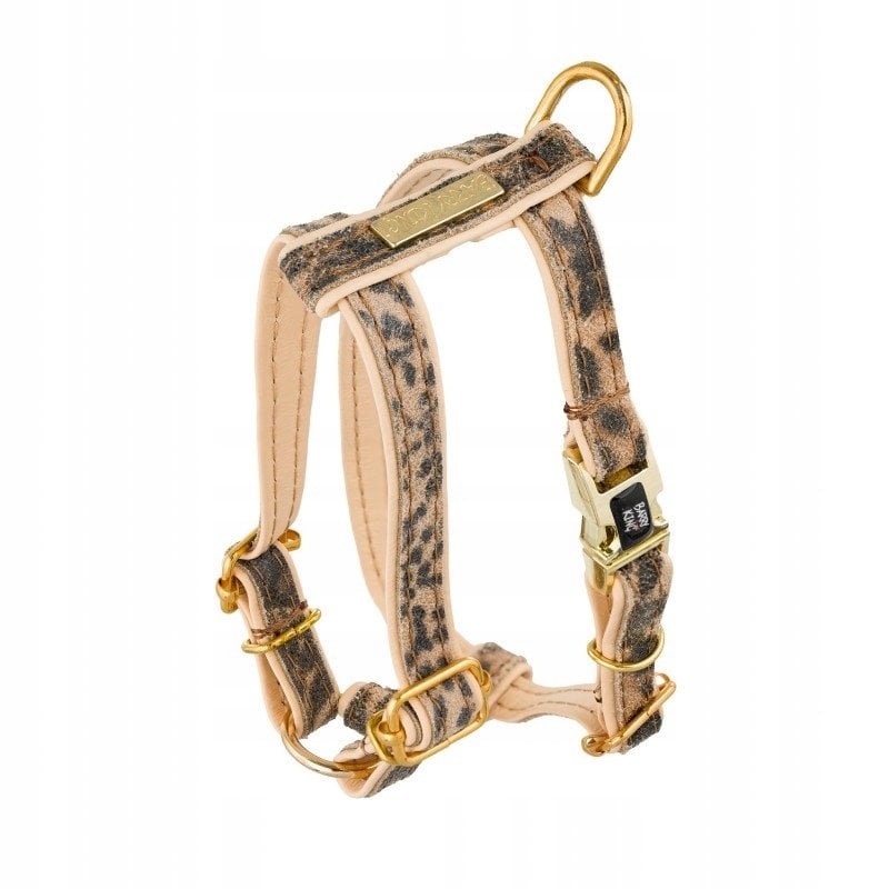 Szelki dla psa, Wild Cheetah, beowe, skórzane mosidz, S 13mm/ob. szyi 25-40cm ob. klatki 35-50cm