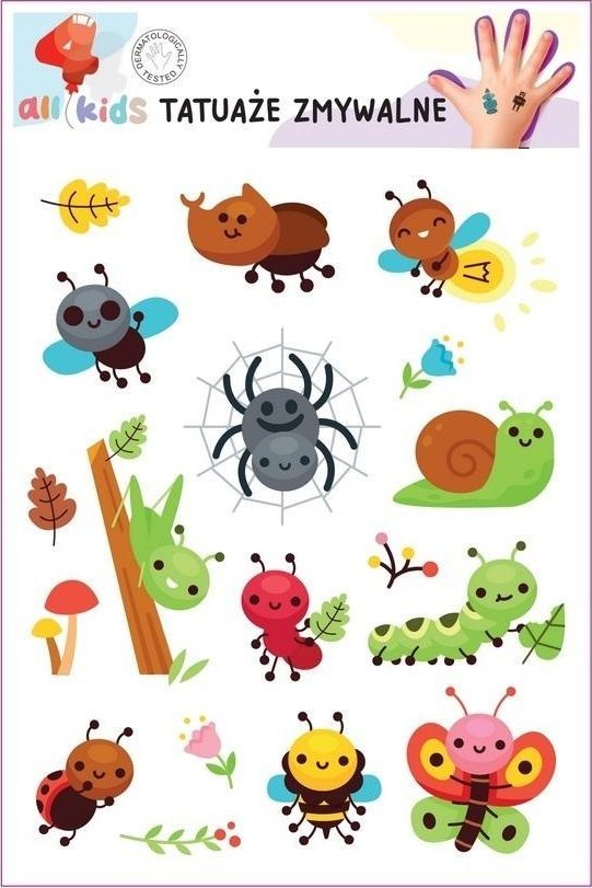 Tatuae zmywalne dla dzieci Wesoe owady