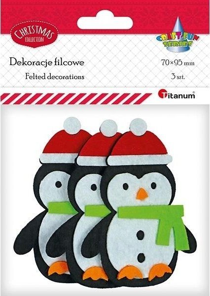 Teka Filcowe pingwiny 3D w czapkach Mikoaja 3szt