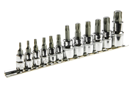 Topex Zestaw nasadek trzpieniowych Torx 1/4" 3/8" 1/2" T10-T60 12szt. (39D342)