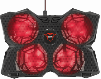 Trust GXT 278. Maximum screen size: 43.9 cm (17.3"), Number of built-in cooling fans: 4 pc(s). Product colour: Black, Illumination colour: Red, LED indicators: Fan fail. Host interface: USB. Power source type: USB, Input voltage: 5 V. Weight: 765 g