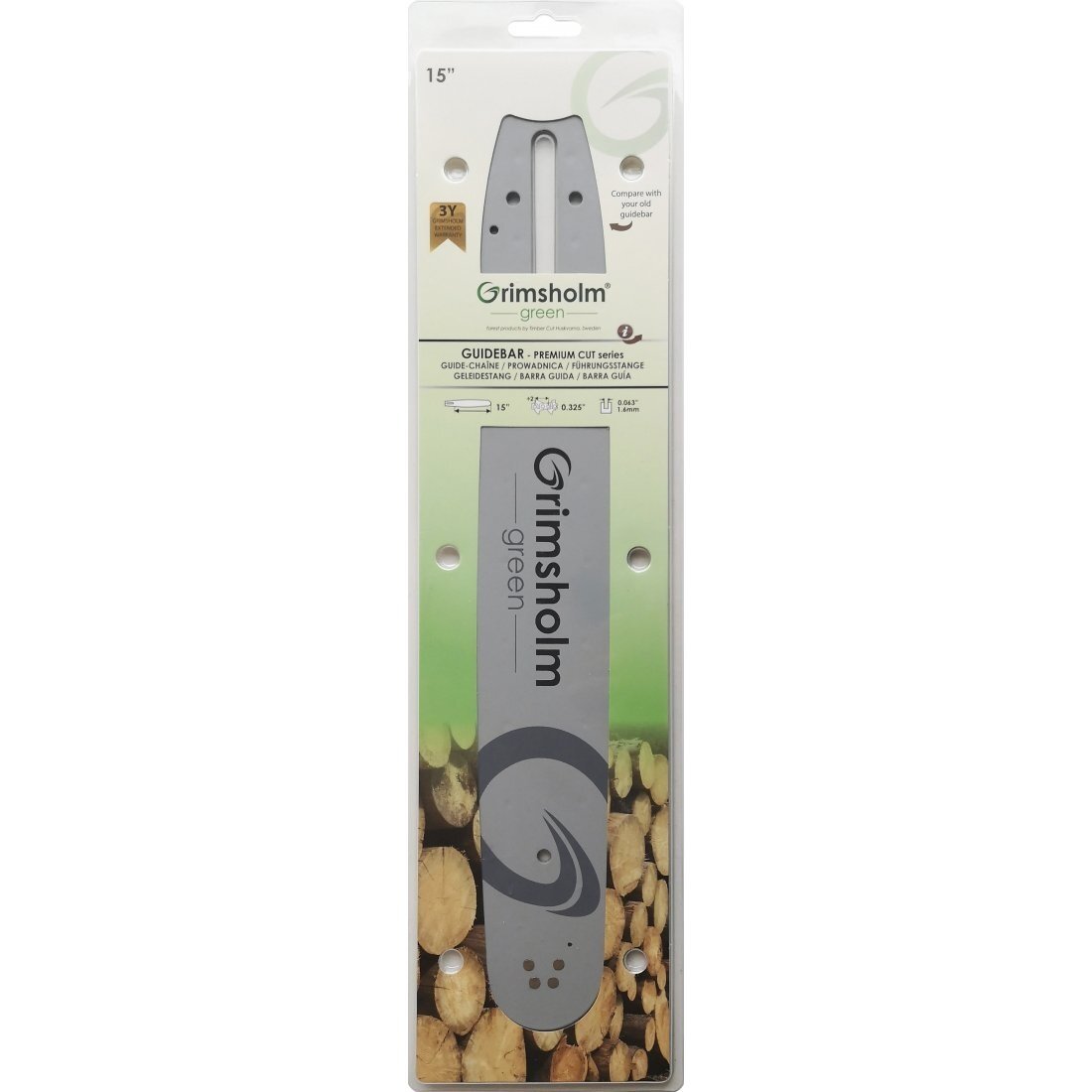 Vadotne ķēdes zāģim Grimsholm 62E Premium Cut 00000993; 15''; 38 cm; .325''; 62; 1,6 mm