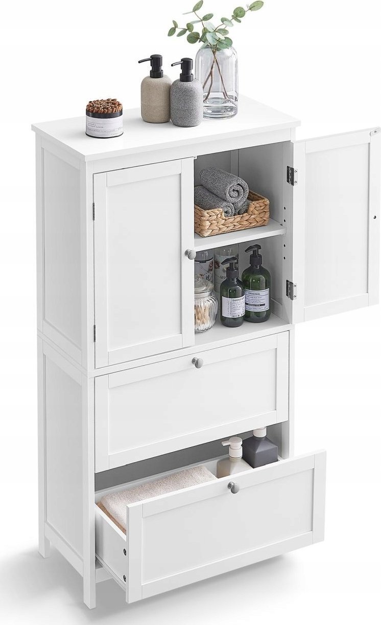 Vasagle Szafka azienkowa, wolnostojca szafka azienkowa z 2 szufladami i 2 drzwiami, regul