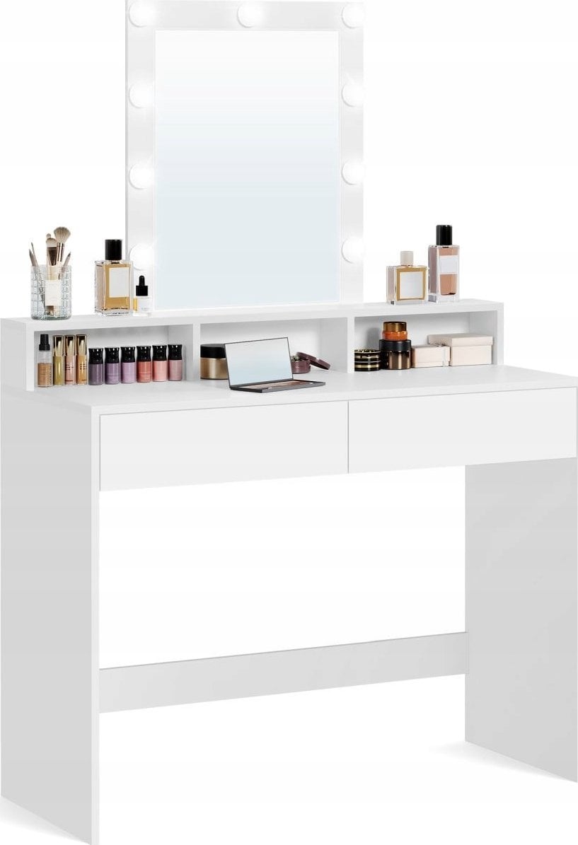 Vasagle Toaletka, Owietlenie Led Z Regulowan Jasnoci, Toaletka Z Lustrem, 2 Szuflady I 3 Przegródki, Kosmetyczka, Nowoczesna, Biaa