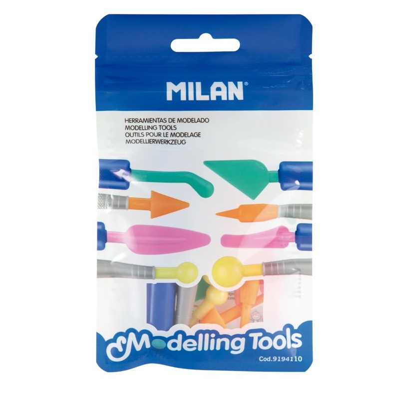 MILAN veidošanas piederumu komplekts ir praktisks radošais palīglīdzeklis bērniem. Komplektā iekļauti piederumi, kas atvieglo darbu ar plastilīnu un modelēšanas masu — griešanai, formēšanai un dažādu figūru veidošanai. Tie ir viegli, droši lietošanā un palīdz bērniem attīstīt sīko motoriku, iztēli un radošās prasmes.