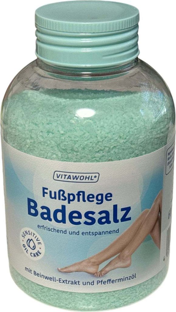 | VITAWOHL sāls kāju vannām ar tauksaknes ekstraktu un piparmētru eļļu, 600 g ir paredzēta nogurušu kāju kopšanai. Formula palīdz atslābināt, atsvaidzināt un tonizēt ādu, sniedzot viegluma un komforta sajūtu.