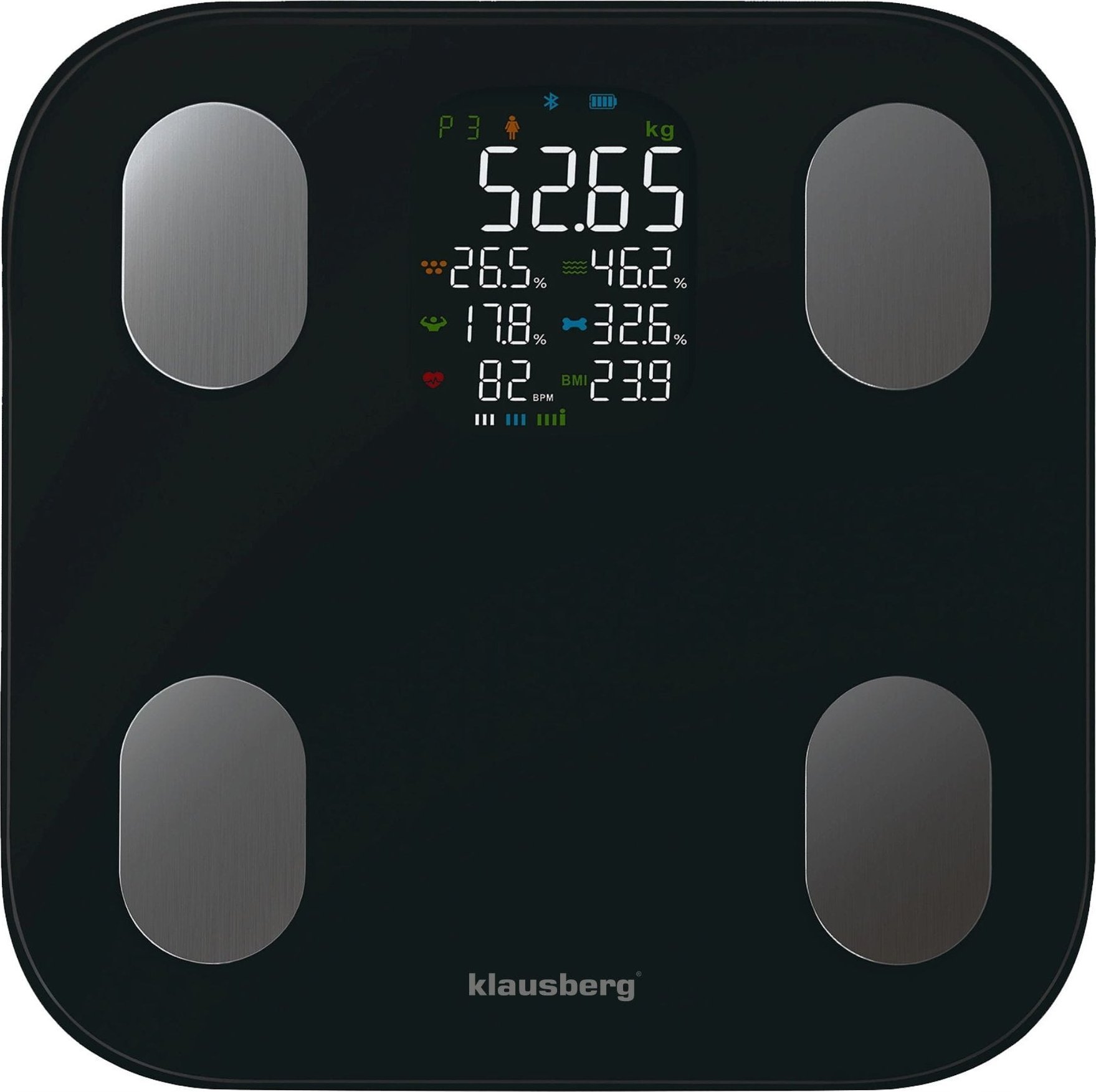 WAGA AZIENKOWA Z POMIAREM TKANKI TUSZCZOWEJ I SKADU CIAA, SMART, BT, KLAUSBERG KB-7854 CZARNA