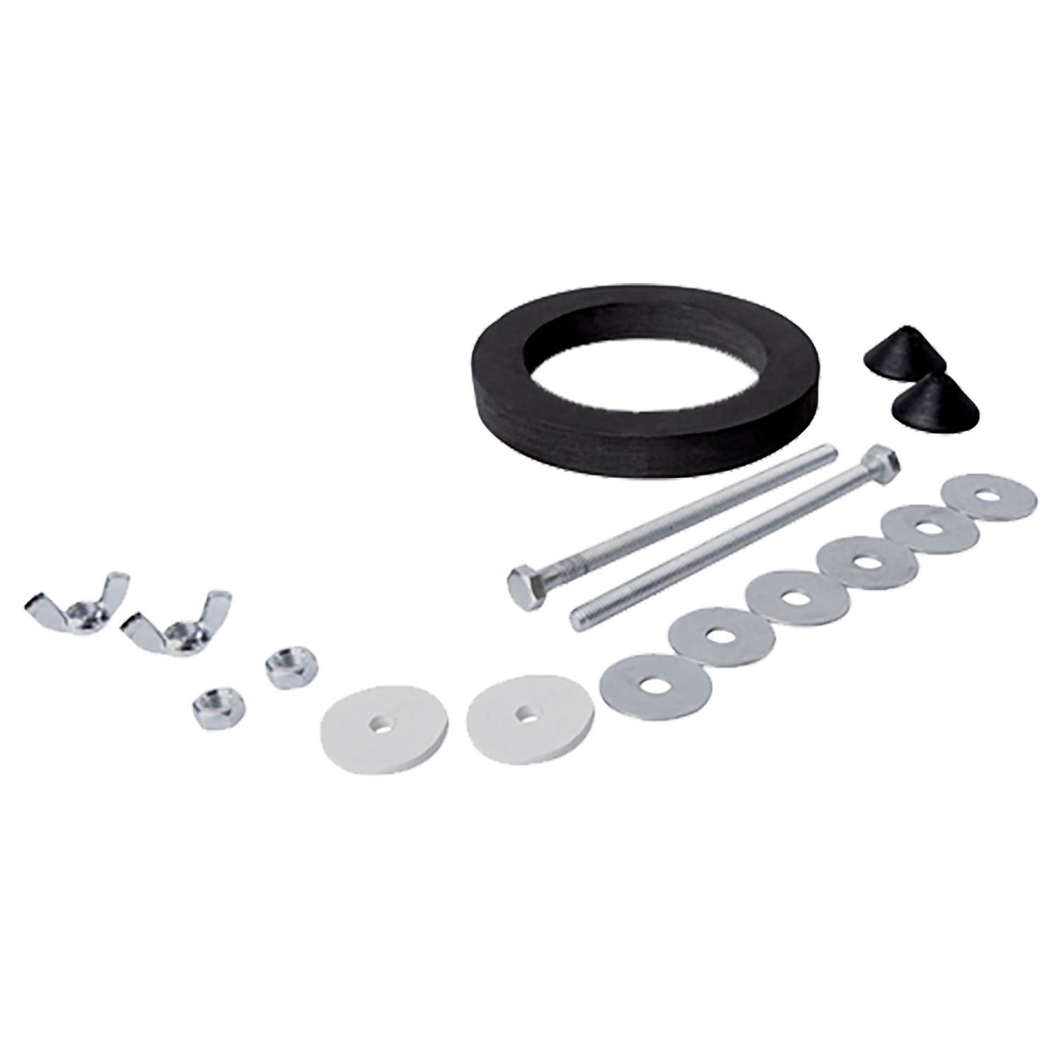 Tualetes podu remonta komplekts keramikas skalojamās kastes montāžai. Komplektā ietilpst blīves tvertnei un skalošanas vārstam, 2 garas skrūves ar paplāksnēm, blīvēm un spārnuzgriežņiem keramikas cisternai.