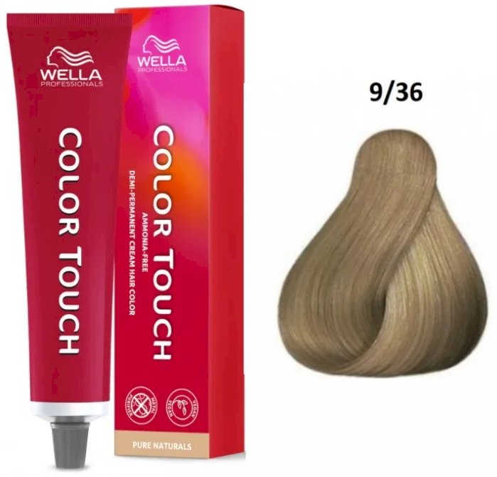 Wella Professionals Color Touch Rich Naturals 9/36 is a professional toning hair color with a rich spectrum of warm brown tones. Its gentle ammonia-free formula gives hair vibrant color, shine and a soft feel, while protecting the hair structure. The color provides even coverage and a visually clear result, maintaining hair elasticity and a healthy appearance.