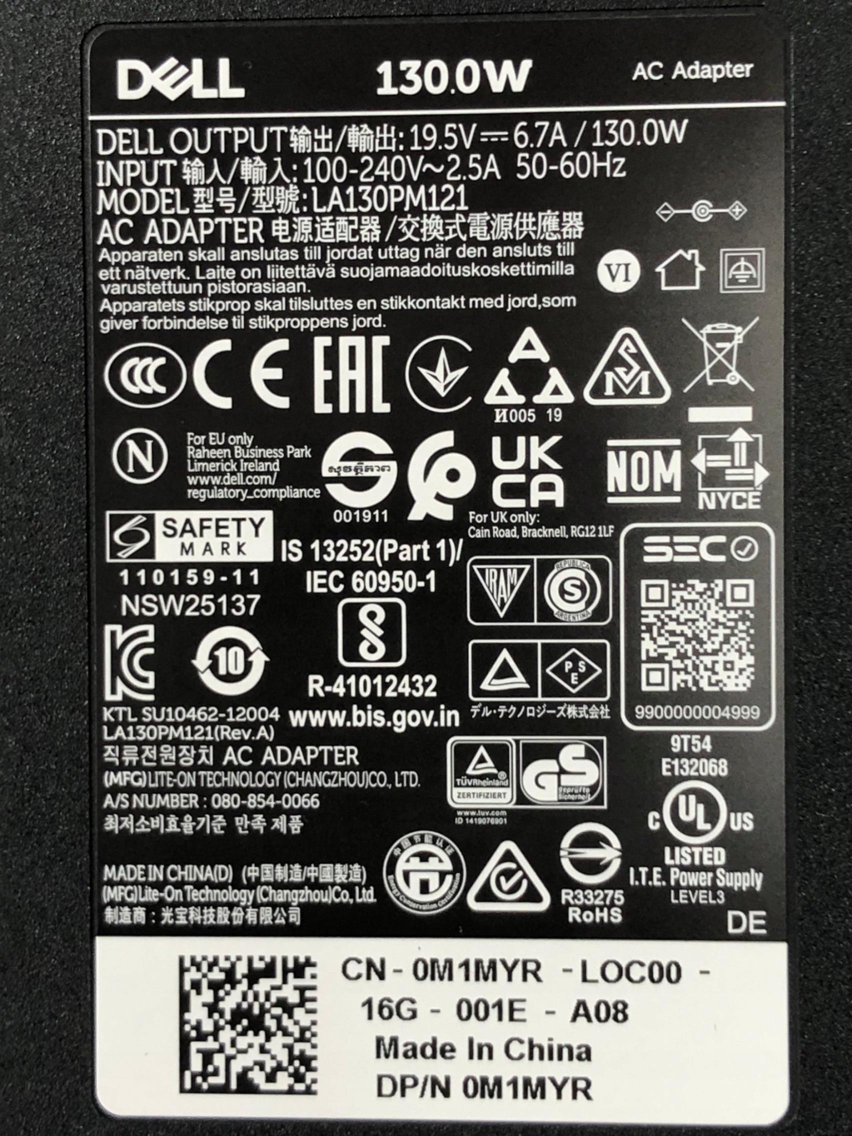 Zasilacz do laptopa Dell 130 W, 19.5 V (3JF3H)