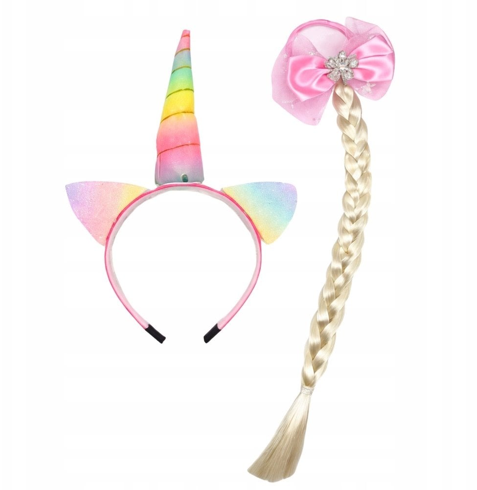 Zestaw Opaska Jednoroec Gumka z Warkoczem Kokardka Pastelowa